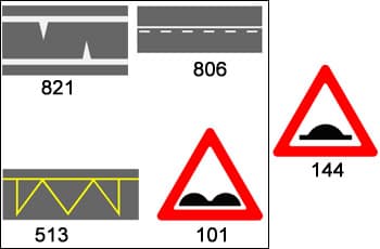 איך לזכור: תמרור 144 הוא תמרור אזהרה שאומר 'היזהר, עוד מעט יש פס האטה'. כעת, אתה מחפש את הסימון שמציירים על הכביש *בדיוק במקום* של פס ההאטה עצמו, כדי להבליט אותו עוד יותר.