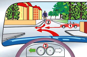 • ג. רוכב האופניים ייכנס ראשון (2) ואחריו הרכב שאתה נוהג בו (3).