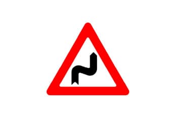 מצוין! 🎯 התמרור מראה בדיוק את זה: קודם פנייה ימינה, ומיד אחריה פנייה שמאלה. זה נקרא 'עקומה כפולה' או 'עקומת S'.