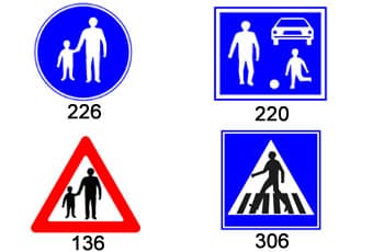 שאלה 1087 בתאוריה משאית: איזה תמרור המוצב בדרך מציין מקום מסומן של מעבר חצייה להולכי רגל?
