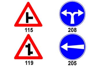 שאלה 292 בתאוריה משאית: איזה מן התמרורים מזהיר על צומת הסתעפות ימינה: