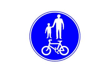 איך לזכור: ראינו תמרור דומה עם קו אנכי, וכאן יש קו אופקי. העיגול הכחול אומר שזה שביל ייעודי, והסמלים מראים שהוא גם להולכי רגל וגם לאופניים. הקו האופקי, שמפריד בין 'למעלה' ל'למטה', מסמל שהם חולקים את אותו המרחב. מה זה אומר?